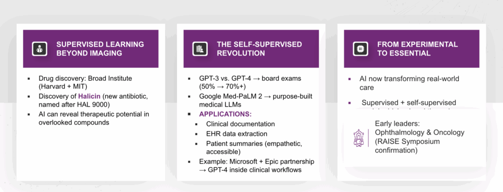 While the 2016 era was defined by pattern recognition, today’s AI revolution is defined by reasoning and language. We have entered the era of Self-Supervised Learning and Large Language Models (LLMs). The Era of Medical Reasoning The progress has been exponential. GPT-4 is capable of scoring over 70% on specialized medical board exams, a significant […]